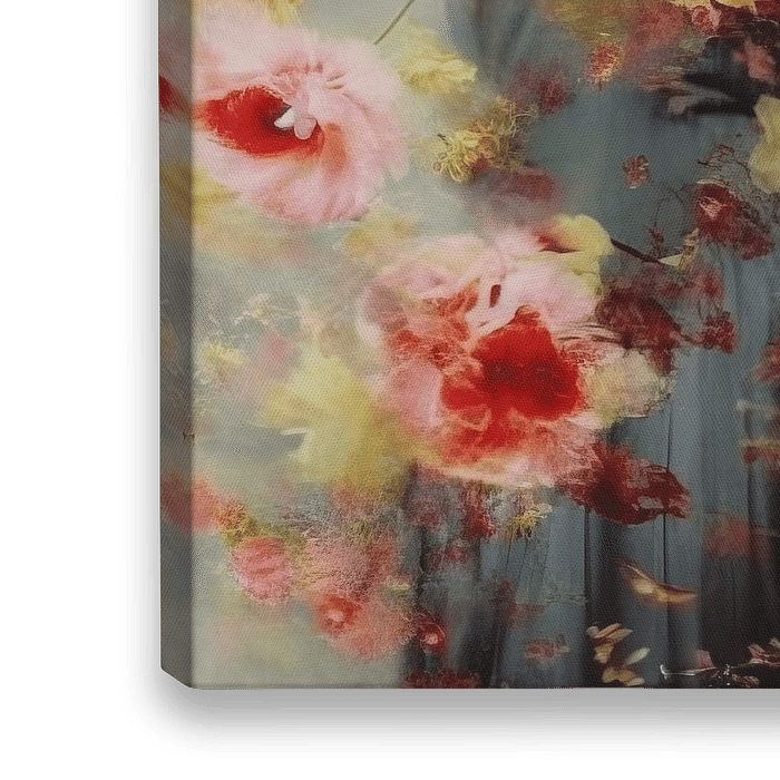 Portret "Flower power" in pastelkleuren. Dit werk heeft een zachte en sfeervolle uitstraling en zal zeker mooi staan in jouw interieur!