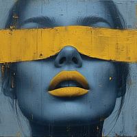 Portret Geel Blauw | Bold Silence - moderne portret vrouw geel/blauw