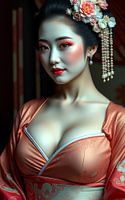 Geisha schilderachtig fotorealistisch japans portret van fictief vrouwelijk persoon
