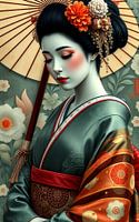 Geisha schilderachtig fotorealistisch japans portret van fictief vrouwelijk persoon