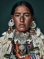 Portret "Nomad". Portret van een jonge Nomade in traditionele klederdracht en uitbundige sieraden. Een bijzonder portret en een echte blikvanger voor jouw interieur!