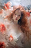 Koop dit bloemen kunstwerk Portret Roodharige Vrouw met Bloemen van Joriali Fine Art op canvas, aluminium dibond, (ingelijste) fotoprint, behang en ArtFrame, op maat geprint in Fine-Art kwaliteit.