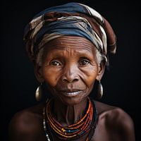 Koop de foto Portret Schilderij Vrouw: Afrikaanse Stam van Surreal Media op canvas, aluminium dibond, (ingelijste) fotoprint, behang en ArtFrame, op maat geprint in Fine-Art kwaliteit.