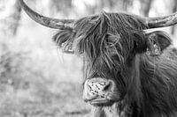 Portret Schotse Hooglander Zwart-Wit van Charlene van Koesveld