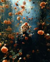 Portret: "Take me to Wonderland". Een uniek portret met een schitterende lichtval. Prachtige blauwtinten gecombineerd met oranje pasteltinten maken van dit werk iets bijzonders.