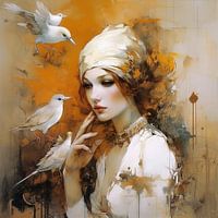 Modern portret in een dromerige sfeer met de titel: "Take me to wonderland". Dit werk is een prachtige en sfeervolle aanvulling op je interieur. Met dit werk hang je echt iets bijzonders aan je wand!