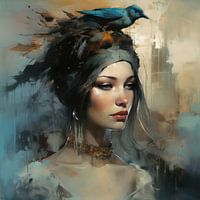 Modern portret in een dromerige sfeer met de titel: "Take me to wonderland". Dit werk is een prachtige en sfeervolle aanvulling op je interieur. Met dit werk hang je echt iets bijzonders aan je wand!