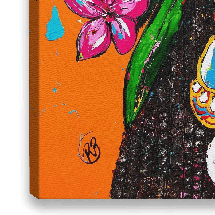 Ontdek de betoverende schoonheid van 'Tropical Elegance', een kleurrijk schilderij met een stralende Caribische vrouw versierd met levendige tropische bloemen. Dit kunstwerk viert de rijke kleuren en cultuur van het Caribisch gebied met gratie en stijl