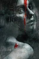 Gezicht, Vrouw, abstract, portret, sexy, mysterieus, rood, schilderij, kunst, verf, brunette, bloed, duisternis, grunge