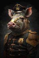 Generaal Spek is een portret van een varken en een waar icoon in het leger van het boerenerf. Dit slimme en dappere varken heeft keer op keer bewezen dat hij een onmisbare aanwinst is voor het team. Ondanks zijn soms wat slungelige uiterlijk is hij een echte leider en weet hij zijn troepen altijd te inspireren en te motiveren. Niets is hem te veel en hij staat altijd paraat om te vechten voor zijn land en zijn medeboerderijdieren.