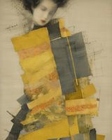 Portret "Yellow color blocking". Bijzonder portret, deels realistisch, deels abstract in geel en bijpassende matte tinten. Mooi in ieder formaat, maar extra gaaf op groot formaat aan je muur.