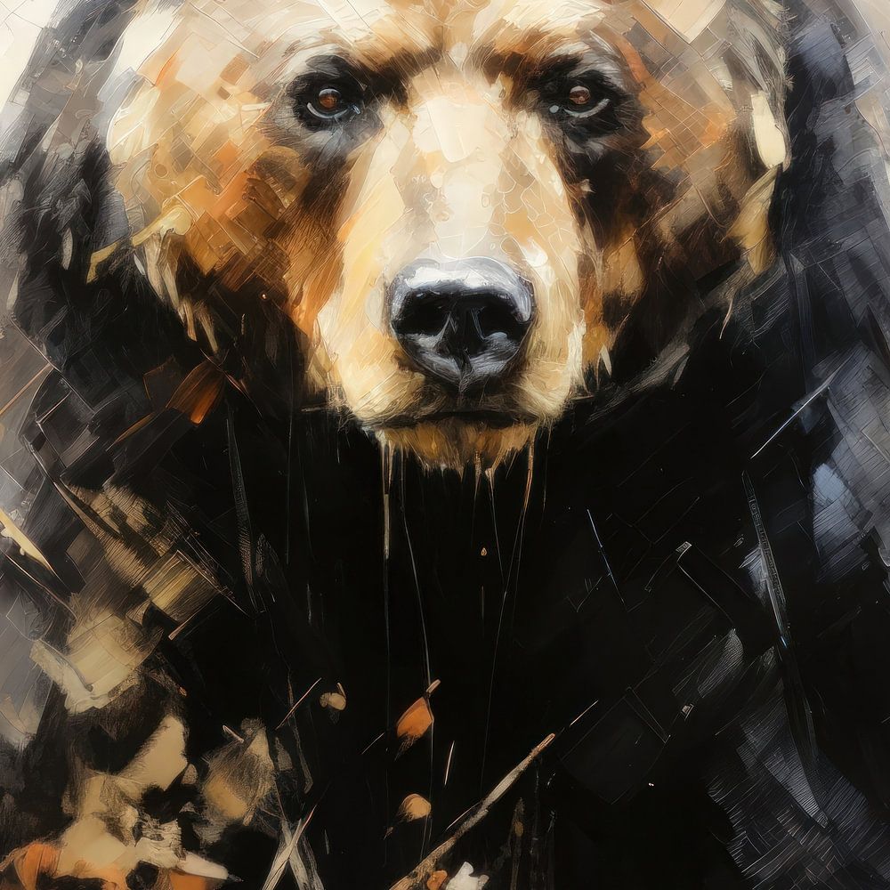 Een beer in de stijl van een modern schilderij.