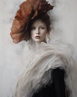 Portret geïnspireerd door de oude meesters in wit, roestbruin en blauw tinten. Kies zelf het formaat en materiaal bij dit werk en maak het passend voor jouw interieur.