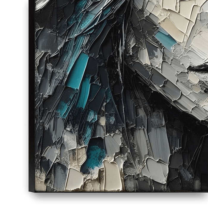Ontdek de rauwe schoonheid van deze uitgevoerde zwart-wit olieverfschildering met de interieurkleur van dit jaar blauw, waar de krachtige penseelstreken een unieke dimensie toevoegen aan het vrouwenportret. Dit kunstwerk ademt expressie en karakter, waardoor elke ruimte doordrenkt wordt met een ongepolijste, authentieke sfeer.