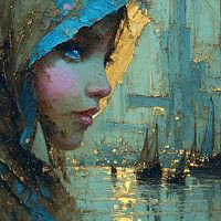 Over ‘Portret in Turquoise Havenlicht’ van Karina Brouwer