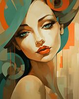 Portret in blauw en oranje. Kies zelf het formaat en materiaal voor dit werk en maak het passend voor jouw interieur. Dit werk heeft zowel een moderne als retro uitstraling.