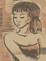 Het werk heeft en minimalistisch karakter. Deze vrouw ademt rust uit. Ze lijkt geconcentreerd op haar eigen zijn, misschien zit ze in een meditatie.