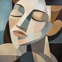 Dit prachtige abstracte portret combineert warme aardetinten met strakke, geometrische vormen om een moderne en stijlvolle uitstraling te creëren. De afbeelding toont een vrouwelijk figuur met zwart haar en grote, ronde oorbellen. De mix van donkere en lichte kleuren zorgt voor een intrigerend contrast dat de aandacht trekt en de verbeelding prikkelt. Dit kunstwerk is perfect voor wie houdt van eigentijdse kunst en een vleugje verfijning wil toevoegen aan het interieur.