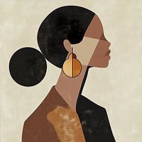 Dit prachtige abstracte portret combineert warme aardetinten met strakke, geometrische vormen om een moderne en stijlvolle uitstraling te creëren. De afbeelding toont een vrouwelijk figuur met zwart haar en grote, ronde oorbellen. De mix van donkere en lichte kleuren zorgt voor een intrigerend contrast dat de aandacht trekt en de…