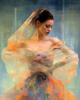 Portret in pastelkleuren "Ballerina". Een zacht en poëtisch portret wat schitterend zal staan aan je muur. Om dit werk het best tot zijn recht te laten komen, laat je het het best afdrukken op artframe, dibond of aluminium.