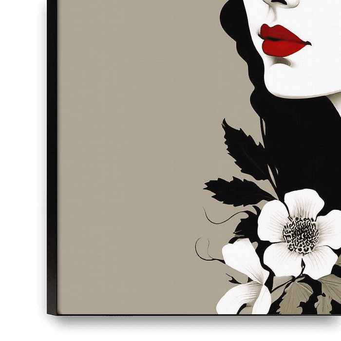 Koop dit bloemen kunstwerk Portret in taupe en zwart / wit. Digital painting van Mariëlle Knops, Digital Art op canvas, aluminium dibond, (ingelijste) fotoprint, behang en ArtFrame, op maat geprint in Fine-Art kwaliteit.