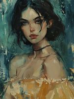 Portret in warme kleuren. Een bijzondere blikvanger voor je interieur. Kies zelf het formaat en materiaal bij dit werk en maak het helemaal passend voor jouw wand.