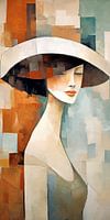 Portret met Hoed 155.68 - een modern portret schilderij als blikvanger in je woonkamer of slaapkamer?