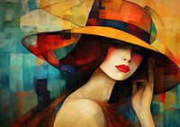 Portret met Hoed 177.94 - een modern portret schilderij als blikvanger in je woonkamer of slaapkamer?