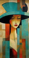 Portret met Hoed 193.16 - een modern portret schilderij als blikvanger in je woonkamer of slaapkamer?