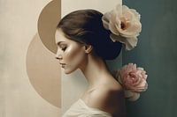 Portret met een poëtische uitstraling in pastelkleuren. Met bloemen en vormen in zachte kleuren. Kies zelf het formaat en materiaal voor deze blikvanger.