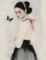 Portret met een poëtische uitstraling, modern en chic. Een bijzondere blikvanger voor je interieur! Kies zelf het formaat en materiaal bij dit werk.