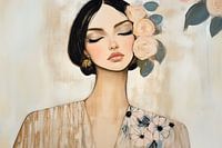 Portret met een zachte uitstraling, pastelkleuren. Een bijzondere blikvanger voor je interieur! Kies zelf het formaat en materiaal bij dit werk en maak het helemaal naar wens.