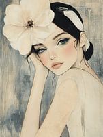 Portret met grote bloem in pastelkleuren. Een bijzondere blikvanger voor je interieur! Kies zelf het formaat en materiaal bij dit werk en maak het helemaal naar wens.