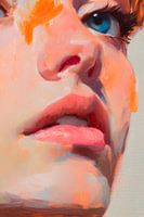 De levendige kleuren en fascinerende aandacht voor detail van deze portretstudie trekken onmiddellijk ieders aandacht. De helderblauwe ogen en delicate uitdrukking geven de kamer een speciale intimiteit. Ideaal voor de slaapkamer, creëert het een rustgevende en inspirerende sfeer die uitnodigt om te dromen.