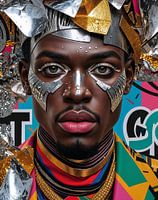 Schoonheid en diversiteit > Schilderij van een man > Portret met metallic elementen in zilver en goud > Abstracte portretfotografie van een mooie man