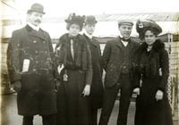 Portret op schip, groep mensen, oude zwart wit foto, Vooroorlogse foto