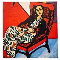 Koop dit portret Portret schilderij van een vrouw rustend in een stoel van Vlindertuin-Art op canvas, aluminium dibond, (ingelijste) fotoprint, behang en ArtFrame, op maat geprint in Fine-Art kwaliteit.