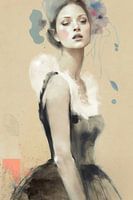 Portret in eclectische stijl met de titel: "soft and tender". Geïllustreerd portret in zachte pastelkleuren van een jonge vrouw gecombineerd met subtiele botanische accenten.