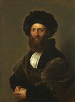 Portret van Baldassare Castiglione, Peter Paul Rubens (1630) Dit is een kopie door Peter Paul Rubens van een beroemd portret van de Italiaanse schrijver en diplomaat Baldassare Castiglione. Het origineel werd rond 1514 geschilderd door de renaissancekunstenaar Rafaël en bevindt zich nu in het Louvre in Parijs. Rubens zou het gezien kunnen hebben in Italië of in Amsterdam, waar het schilderij zich in 1630 bevond. Het is echter waarschijnlijker dat hij werkte naar andere kopieën of prenten. Waarschijnlijk schilderde Rubens dit werk als eerbetoon aan het originele portret, maar ook als een vorm van artistieke rivaliteit met Rafaël.