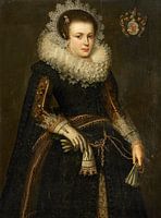 Zuster van Johan van Ceters. Kniestuk, staande naar rechts. Handschoen in de rechterhand, een waaier in de linkerhand. Rechtsboven het familiewapen.
