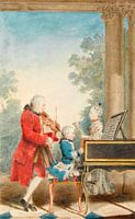 Portret van Wolfgang Amadeus Mozart (Salzburg, 1756-Wenen, 1791) spelend in Parijs met zijn vader Jean-Georg-Léopold en zijn zus Maria-Anna, Louis Carrogis Carmontelle.