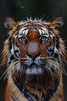 Koop dit portret Portret van Tijger in de Regen van Art & Soul Creations als print op canvas, aluminium dibond, (ingelijste) fotoprint, behang en ArtFrame. Voor jou op maat geprint in Fine-Art kwaliteit.