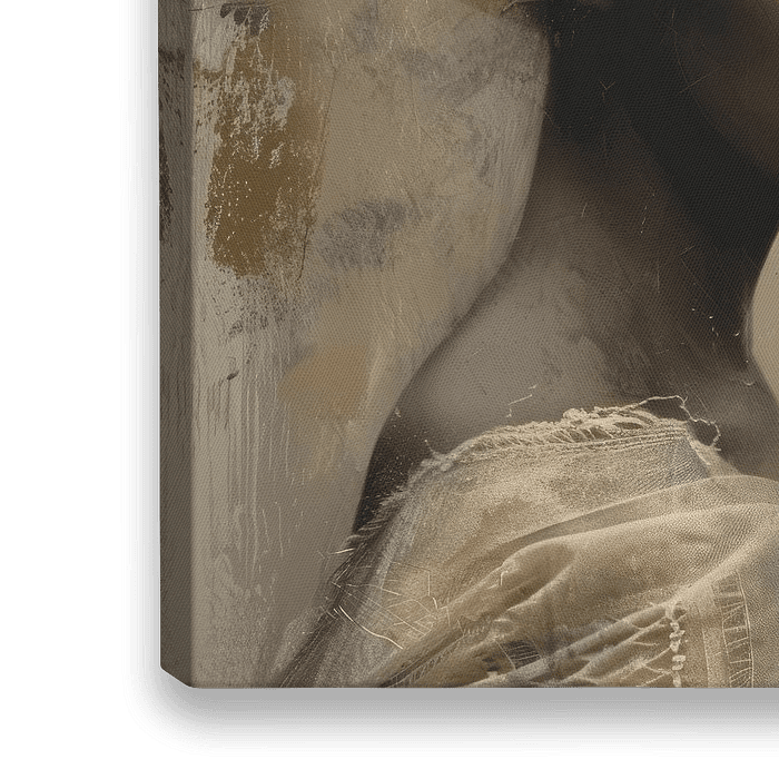 Portret van een Afrikaanse vrouw, modern en deels abstract. In aardetinten en goud. Modern chic. Kies zelf het formaat en materiaal en maak er een echte blikvanger van voor jouw interieur.
