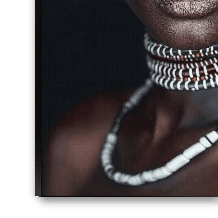 Portret van een Afrikaanse vrouw, bijzondere blikvanger. Kies zelf het formaat en materiaal bij dit werk en maak het helemaal passend voor jouw interieur.