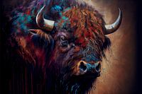 Een digitaal geschilderd portret van een bison. Het kleurpalet en de rauwe stijl van dit werk is geïnspireerd door roestig metaal. Dit kleurenpalet gecombineerd met de verf spetters creëeren een grungy en mysterieuze look. Het werk geeft dan ook een moderne industriële look aan uw interieur!