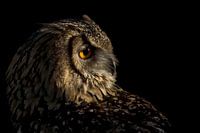 Een portret van een Europese oehoe.