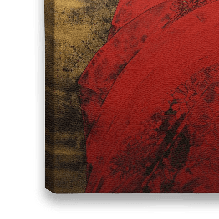 Portret van een Geisha in rood en goud.. Thema Azië, collage van een jonge vrouw in rode kimono tegen een gouden achtergrond. Eclectisch.