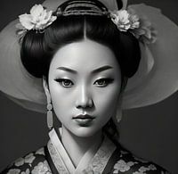 Koop dit digital art kunstwerk Portret van een Geisha in zwart wit. van Brian Morgan als reproductie op canvas, aluminium dibond, (ingelijste) fotoprint, behang en ArtFrame, op maat geprint in Fine-Art kwaliteit.