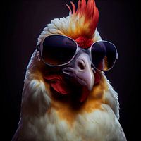 De look & feel van een stijlvol statieportret...maar dan van een haan met stoere zonnebril