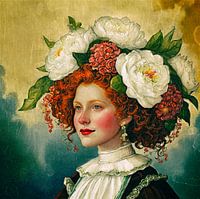 Nostalgisch portret van een vrouw die gefotografeerd lijkt te zijn in een tijdsperiode dat portretten nog alleen geschilderd konden worden.